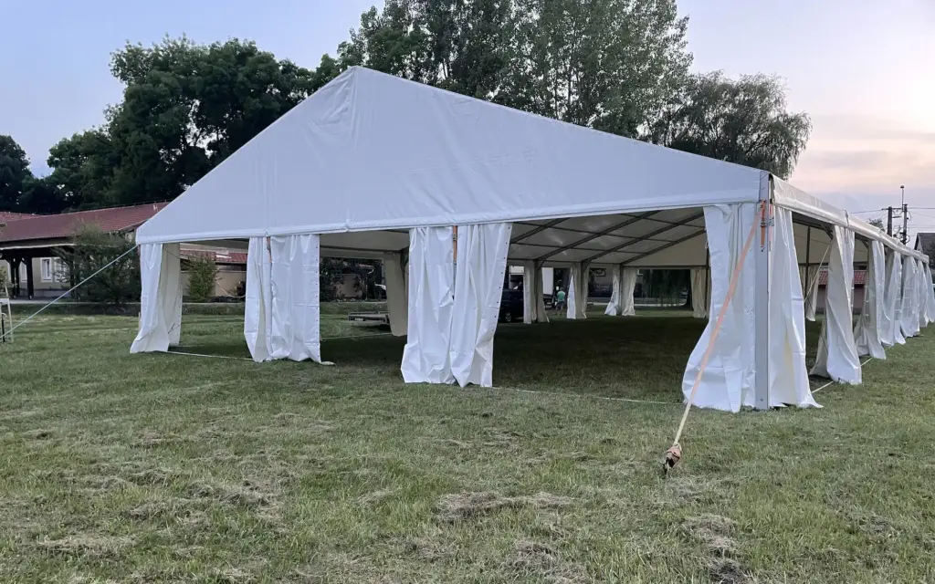 Ez a 15 méter széles, prémium kategóriás rendezvénysátor tökéletes választás, ha nagy létszámú, szabadtéri eseményhez keres időjárásálló és esztétikus fedett megoldást.